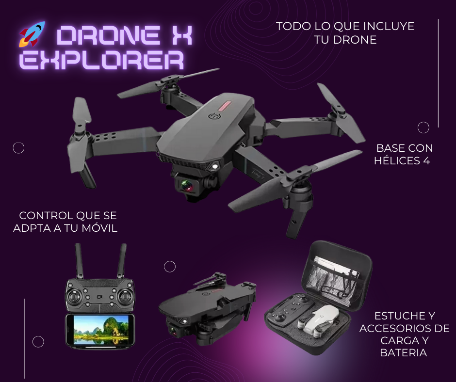 ncluye el drone, control remoto, batería recargable, cable de carga, hélices de repuesto, herramientas básicas y estuche, listo para regalar y usar.